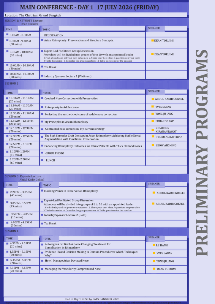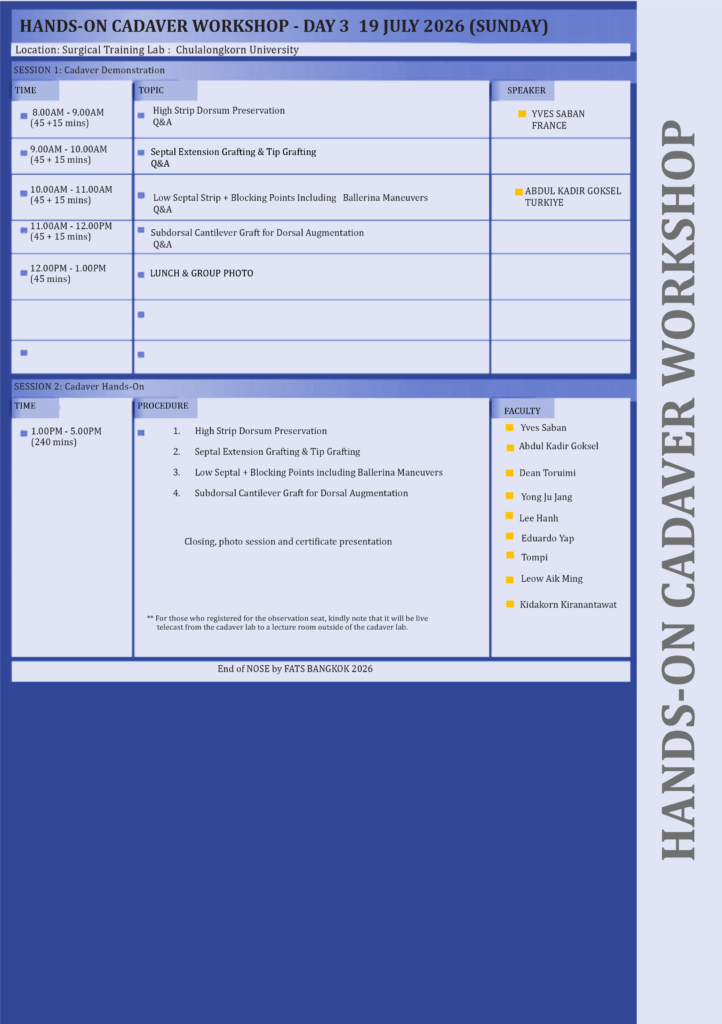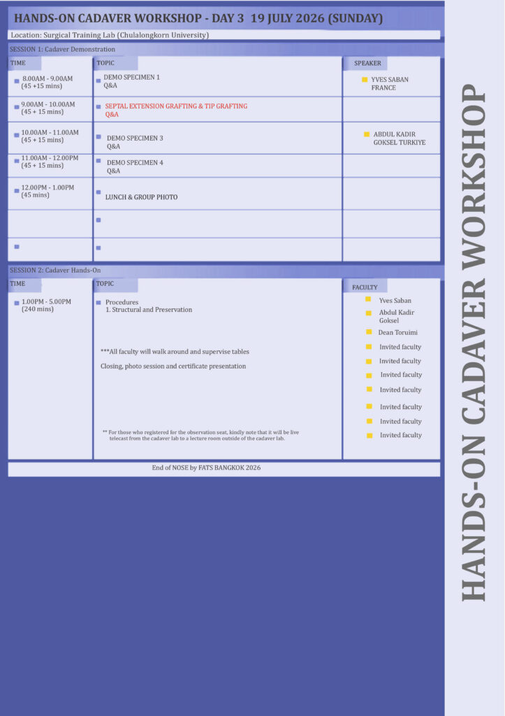 Details coming soon as we are in the midst of finalizing the programme………. CLICK HERE TO REGISTER FOR SPECIAL EARLY BIRD PRICE FOR NOSE by FATS BANGKOK 2026
